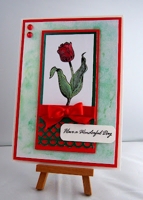 On this week's sample card I have used the rose border from Tanda Stamps Art Deco set 1 and a resized floral lady from the same set.